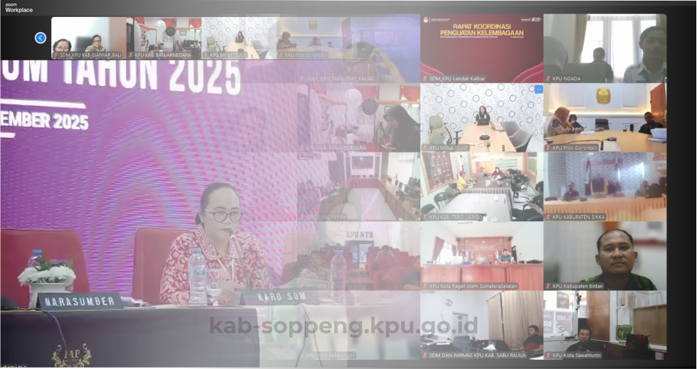 Watansoppeng, KPU Kabupaten Soppeng mengikuti Rapat Konsolidasi Layanan Tata Kelola Kepegawaian dengan BKN di lingkungan Sekretariat Jenderal KPU Tahun 2025 yang dilaksanakan secara daring, Jumat (12/9).