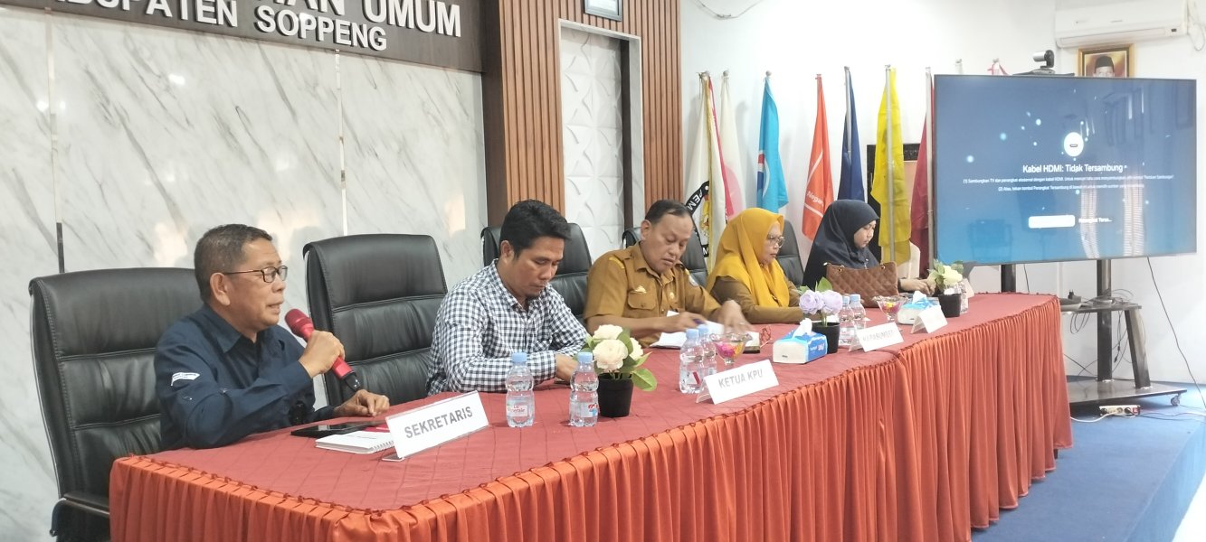 Komisi Pemilihan Umum (KPU) Kabupaten Soppeng melaksanakan kegiatan rapat koodinasi dan evaluasi kearsipan pasca pemilu dan pemilihan lingkup KPU Soppeng, pada hari Selasa (2/12/2025), bertempat di Aula Kantor KPU Kabupaten Soppeng.