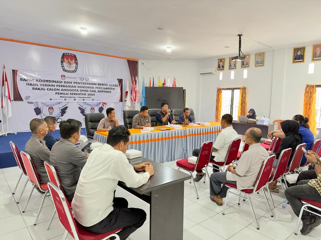 KPU Soppeng Undang Parpol Hadiri Rakor Penyampaian BA Vermin Perbaikan Dokumen Balon Anggota DPRD Pemilu 2024