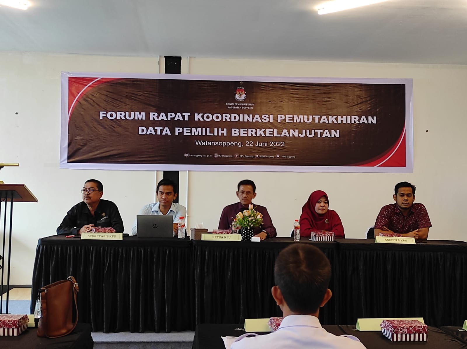Watansoppeng, https://kab-soppeng.kpu.go.id - Rabu (22/06/2022) bertempat di Aula D’Kayangan Cafe & Resto, Komisi Pemilihan Umum Kabupaten Soppeng melaksanakan Forum Rapat Koordinasi Data Pemilih Berkelanjutan. Kegiatan rakor ini dimulai pada pukul 10.00 s/d 12.00 WITA dan dibuka secara resmi oleh Ketua KPU Kabupaten Soppeng, Muhammad Hasbi.