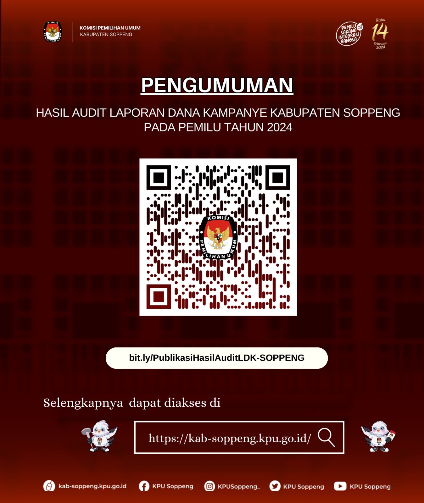 Berdasarkan Laporan Hasil Audit Laporan Dana Kampanye Peserta Pemilihan Umum Tahun 2024 oleh Kantor Akuntan Publik yang telah ditunjuk oleh Komisi Pemilihan Umum Provinsi Sulawesi Selatan, disampaikan hasil audit Laporan Dana Kampanye Peserta Pemilihan Umum yang dapat diakses dan diunduh dengan klik pada tautan ini.