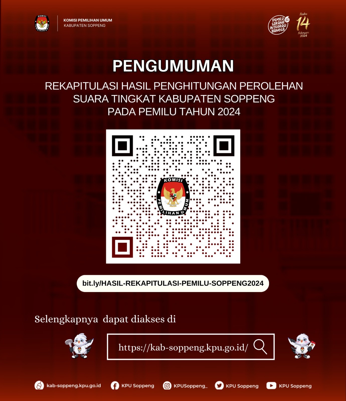 Pengumuman Rekapitulasi Hasil Penghitungan Perolehan Suara Tingkat Kab. Soppeng Pada Pemilu Tahun 2024
