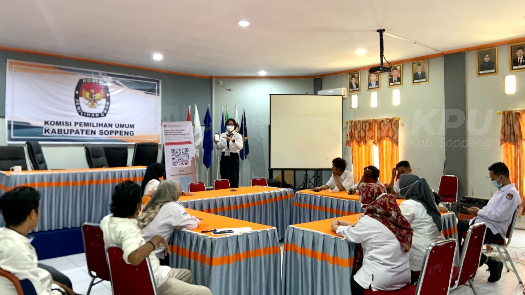 Adalah Fanny Andriyani S.IP salah seorang Calon Pegawai Negeri Sipil di lingkup Sekretariat Jenderal KPU Republik Indonesia, yang bertugas di KPU Kabupaten Soppeng. Berdasarkan surat dari Kemendagri nomor 893.4/1904/PPSDM-MKS tanggal 8 September 2021 perihal Pemanggilan Peserta Pelatihan Dasar CPNS Gol.III Angkatan VIII tahun 2021, maka Fanny begitu biasa dia disapa harus mengikuti Diklat prajabatan/Pelatihan Dasar CPNS mulai tanggal 13 September sampai dengan 13 November 2021 di kampus Pusat Pengembangan Sumber Daya Manusia (PPSDM) Regional Makassar. Dalam kurun waktu dua bulan tersebut, Fanny sebagai seorang CPNS wajib membuat sebuah karya tulis/ karya ilmiah sebagai hasil dari kegiatan latsar prajabatan. Untuk itu, setelah mengikuti diklat di kampus PPSDM selama kurang lebih 3 minggu, maka per tanggal 4 Oktober 2021 Fanny harus kembali ke satker KPU Kabupaten Soppeng untuk melakukan aktualisasi dan habituasi program yang akan dia susun sebagai karya akhir di latsar. Adapun aktualisasi yang dipilih oleh Fanny berjudul PUANG Soppeng ( Pelayanan Terpadu Informasi dan Dokumentasi Berbasis Digital di KPU Kabupaten Soppeng). Karya tulis ini mencakup semua nilai yang didapatkan pada saat latsar mulai dari akuntabilitas, anti korupsi, nasionalisme, dan etika publik. Sebagai bentuk aktualisasi di satker, pada hari Senin (01/11/2021), Fanny melaksanakan sosialisasi tentang PUANG Soppeng kepada Ketua & Anggota KPU, serta Pegawai di lingkup Sekretariat KPU Kabupaten Soppeng. Sosialisasi ini dilaksanakan selain untuk memeperkenalkan cara kerja aplikasi yang dirancang juga sebagai cara untuk mendapatkan masukan dan saran sebelum merampungkan karya tulis dan masuk kampus PPSDM kembali mulai tanggal 8 hingga 13 November 2021. Semoga saja, aplikasi sebagai bentuk aktualisasi salah seorang staf CPNS di lingkup KPU Soppeng ini bisa digunakan untuk memudahkan dalam pelayanan informasi kepada masyarakat, tentu saja dengan melakukan berbagai penyesuaian dan pengembangan seusai kebutuhan dan peraturan yang berlaku.