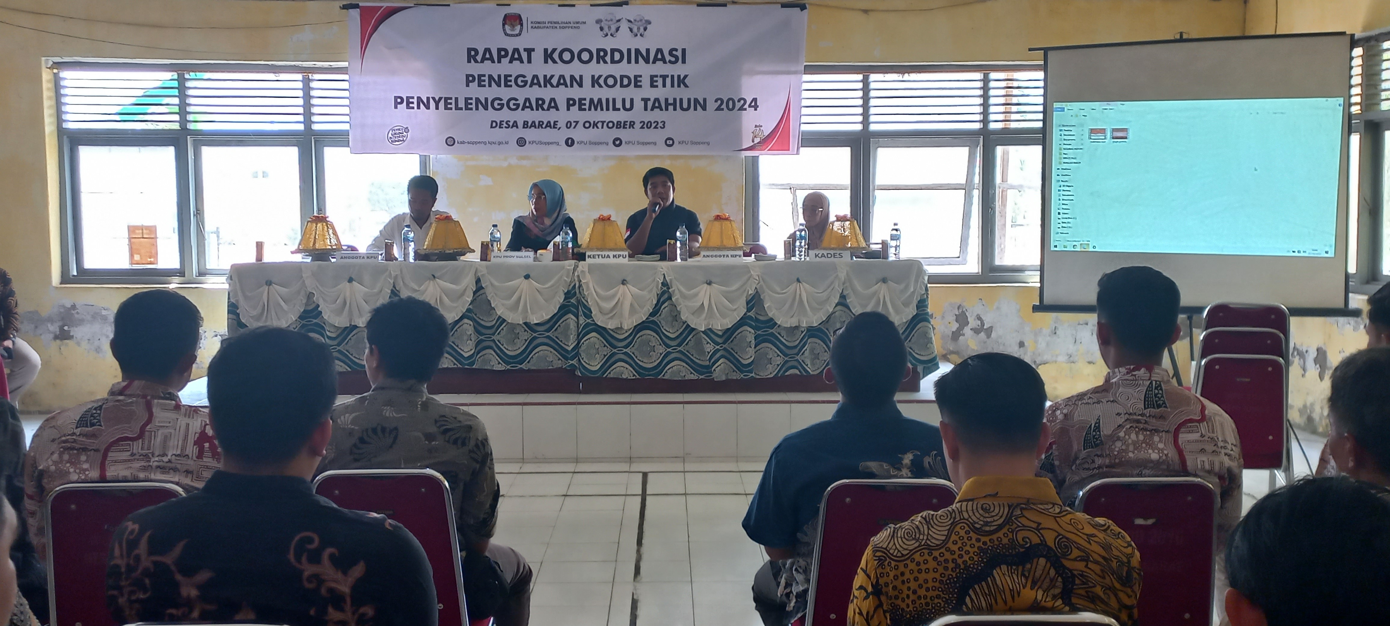 Komisi Pemilihan Umum Kabupaten Soppeng menggelar Rapat Koordinasi (Rakor) Penegakan Kode Etik Penyelenggara Pemilu Tahun 2024 di Kantor Desa Barae Kecamatan Marioriwawo. Kegiatan ini dilaksanakan pada hari Sabtu (07/10/2023) mulai pukul 09.00 WITA sampai selesai.