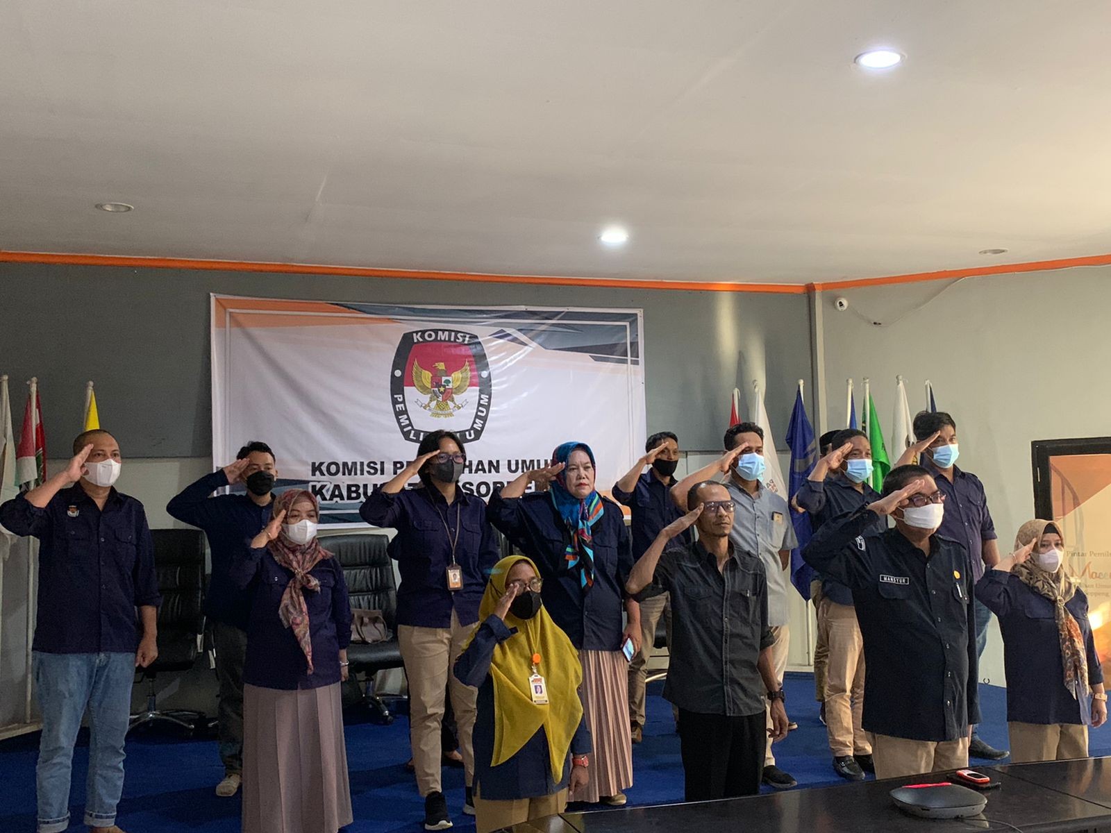 Sekretaris Jenderal KPU RI Bernard Dermawan Sutrisno yang bertindak sebagai pemimpin apel menegaskan komitmen dan kesiapan seluruh jajaran kesekretariatan KPU yakni 14.197 Pegawai ASN yang tersebar pada 549 satuan kerja Sekretariat Jenderal KPU, Sekretariat KPU Provinsi dan Sekretariat KPU Kabupaten/Kota seluruh Indonesia, guna membantu tugas KPU RI periode 2022 – 2027 untuk menyelenggarakan Pemilu dan Pemilihan Serentak Tahun 2024.