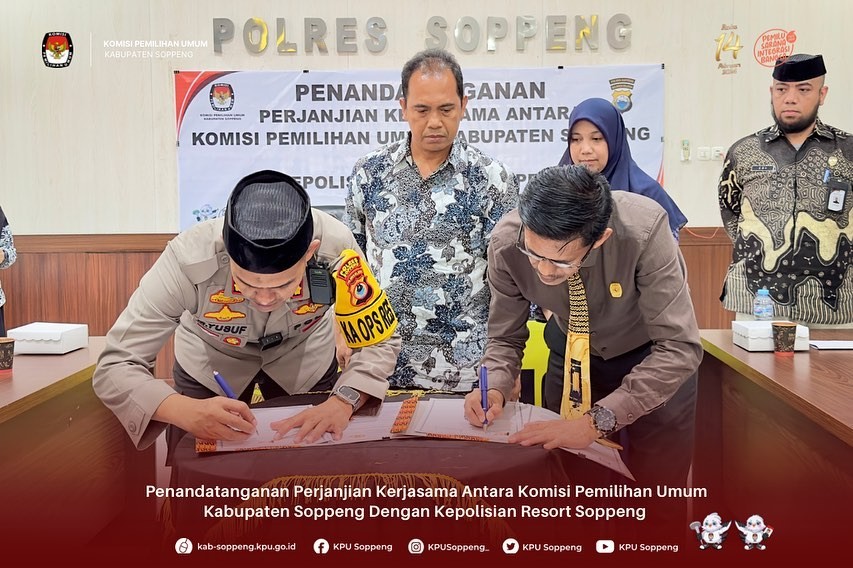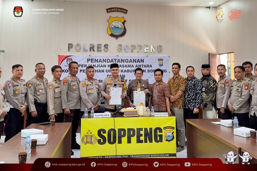 2. PENANDATANGAN PERJANJIAN KERJA SAMA ANTARA KPU KABUPATEN SOPPENG DENGAN KAPOLRESSOPPENG